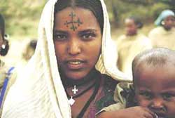 our attention focused on them. This photograph is a stark contrast to Salgado's picture. While both are of a mother and her child, this photograph seems more like a snapshot. Although this photographer also used natural lighting, he did not use existing light. So, this picture is deprived of the realistic appearance which Salgado's photograph possesses. As to the composition of this picture: these people obviously knew that they were being photographed. This picture does not capture the reality of the scene. The mother and child are clearly the center of interest, but if you use the rule of thirds, you will see that, while her right eye is at an intersection, that is it. This makes the photograph somewhat static. Kodak says that if the background is too cluttered, it will detract from the center of interest, and this background is very chaotic. Also, with a person cut off on the left side of the picture, it draws our focus to that person and away from the center of interest. The scarf around this woman's head actually pulls our focus down to the bottom of the picture. And since that side of the scarf dominates the left side of the picture, and the other side of the scarf fades into the background, that side of the scarf, which could have pulled our focus to the baby, is ineffective. So, while both Salgado's photograph and this picture are of a mother and her child, Salgado's photograph has much more meaning within it and is more real to its viewers, because of its composition. This is how I analyzed Salgado's photograph, and I believe that it brings us to a greater understanding of what Salgado wants us to take away from looking at it. The way the mother is holding her child is reminiscent of many paintings and statues of the Virgin Mary holding Jesus when he was a baby. And Salgado has bathed her in light that gives her and the child halos. Mary has always been depicted as travel-weary, but carrying on for the sake of her son, and just like the story of the flight to Bethlehem, these are Refugees from a place where they, too, have been persecuted. So, if Salgado intended this religious imagery (which I believe he did), what message is he trying to convey? Why did he choose this mother and child? Well, that is up to each individual person who looks at this picture to decide for themselves. But, I do believe that, despite the religious images in the picture, the most important message that Salgado wants us to take away from looking at this photograph goes along with the title of the book: An Uncertain Grace. There is an uncertain grace to the way this mother sits there, wearied by the trials she faces every day. She must be exhausted, but still she provides her child with nourishment, because she knows that this is what her child needs to survive in an already harsh world.